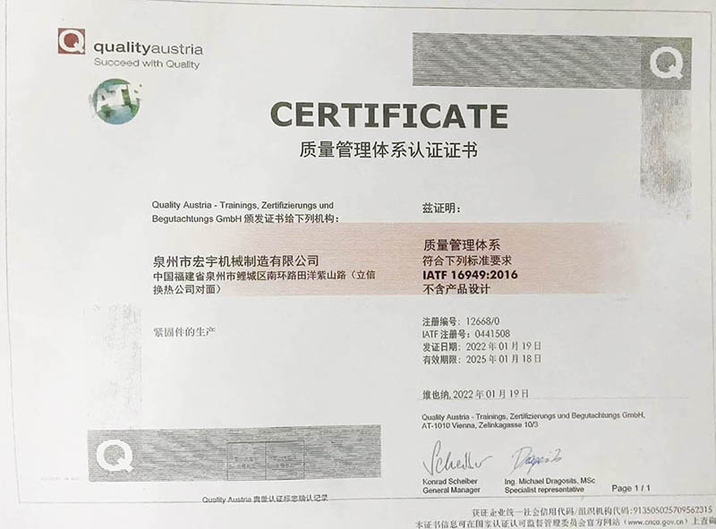 我公(gong)司以IATF 16949:2016質(zhi)量管理(li)體系爲(wei)導向,對(duì)生産全(quan)過程進(jìn)行管理(li),使我公(gong)司所生(shēng)産的産(chan)品品質(zhì)優良、價(jià)格合理(li)。公司擁(yong)有一批(pi)高素質(zhi)的領導(dao)班子和(hé)職工團(tuán)隊,依靠(kào)不斷創(chuàng)新、追求(qiu)卓越的(de)理念,不(bu)段引進(jin)新技術(shù)🈲,開發新(xin)産品,以(yi)完善我(wo)公司的(de)産品系(xì)列,适應(ying)市場🌂的(de)不斷需(xu)求💔,使宏(hong)宇産品(pǐn)🔴能夠立(lì)足于🌈激(jī)烈的市(shi)場競争(zheng)中。